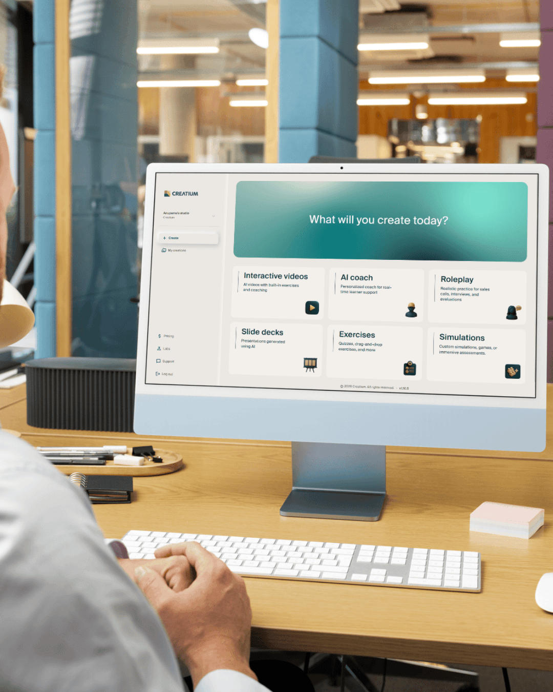 Creatium is the AI-powered employee training software designed for businesses that need professional, interactive training without hiring an instructional design team. Upload what you know—a PDF, a slide deck, even just an idea—and Creatium turns it into an interactive learning experience with AI coaching, knowledge checks, and real practice scenarios your team will actually complete.