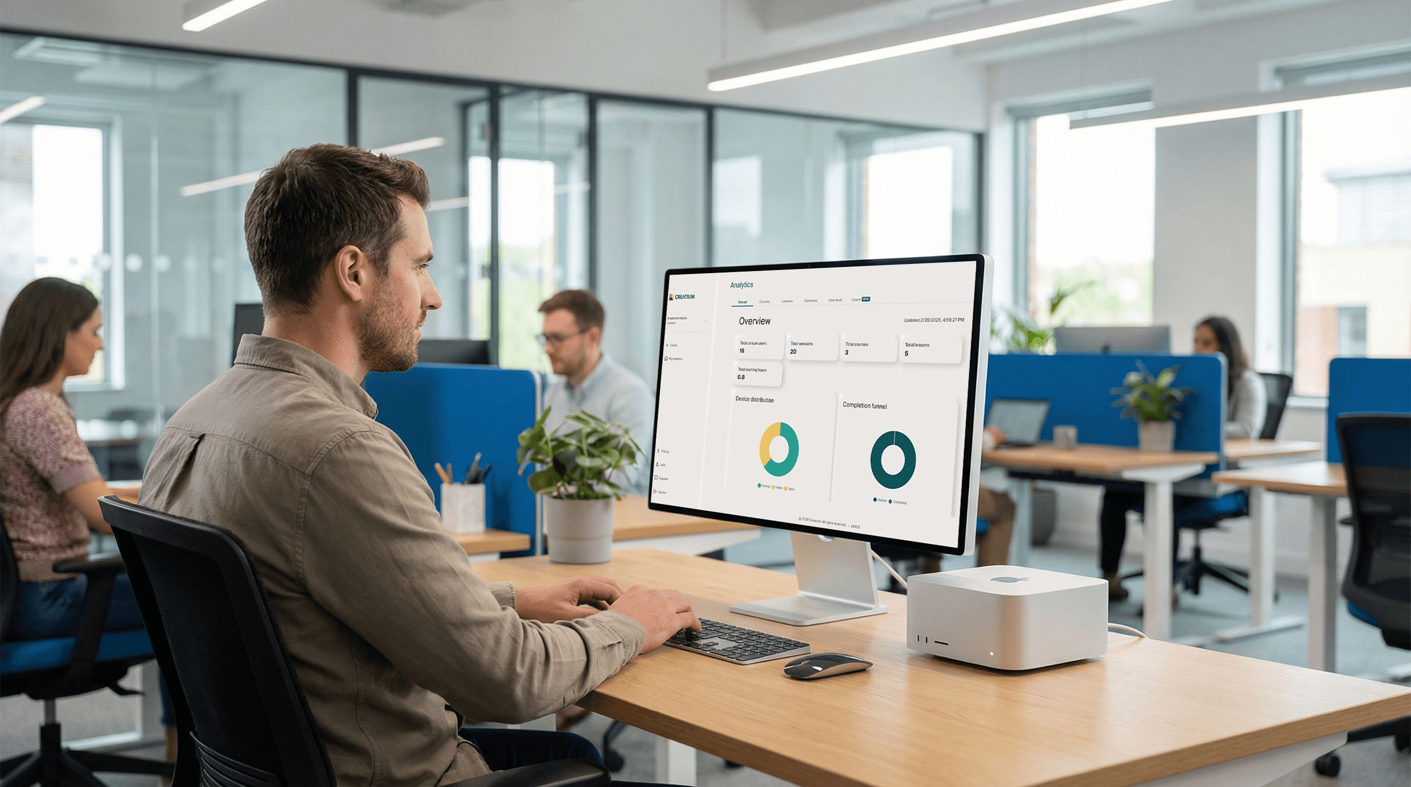 Creatium tracks completion, comprehension, and knowledge gaps automatically—so you know where Suzie is struggling to close before his next big call, which part of onboarding everyone seems to get stuck on, and what questions your team keeps asking the AI coach. No spreadsheets, no chasing people down. Just a clear picture of where your team stands before it becomes a problem.